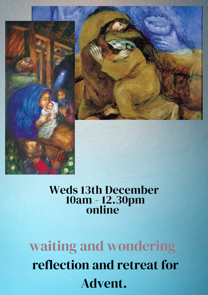 It’s that time of year when frenetic busyness and worry can take over, and what we really want to do is to focus in on the reason behind the season. I’ve created a morning retreat, via zoom. It’s short enough to fit into a busy schedule, to give an opportunity to pause and reflect. The morning splits into three sessions. There will be short bits of input from me to start each session – some prayers, poems, readings, and images – followed by time in your own setting to wonder and reflect, to use as is helpful to you. We’ll finish up by having a bit of time to bring any reflections together and think about what we’ll take away, but there is no pressure to say anything if you’d rather not! I hope you can join me. If you’re not free on Weds 13th Dec at 10am I will make the resources available separately. Book on to the retreat via Eventbrite.